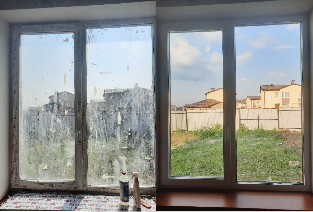 Для мытья окон используем профессиональные средства, парогенератор для удаления грязи из труднодоступных мест, слабощелочное моющее средство. Промываем пластиковые элементы (профиль, козырьки, подоконники). Удаляем грязь из труднодоступных мест (уплотнительные резинки, места стыковки профиля оконной рамы). Моем стекла, убирая солевые отложения при необходимости